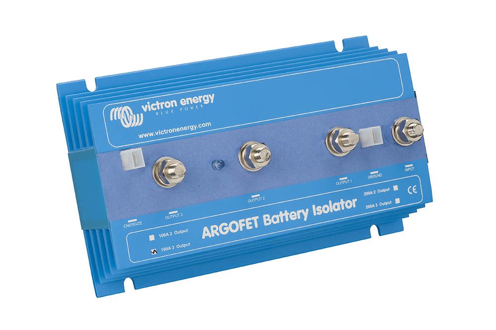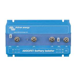 Semblables aux répartiteurs de batteries à diode, les répartiteurs FET permettent de charger en même temps deux batteries ou plus à partir d’un alternateur (ou d’un chargeur de batterie à simple sortie), sans qu’il ne soit nécessaire de raccorder les batteries entre elles. Contrairement aux répartiteurs de batteries à diode, les répartiteurs FET n’ont pratiquement aucune perte de tension. Les chutes de tensions sont inférieures à 0,02 Volts pour des courants faibles, et en moyenne de 0,1 Volt pour des courants plus élevés.
