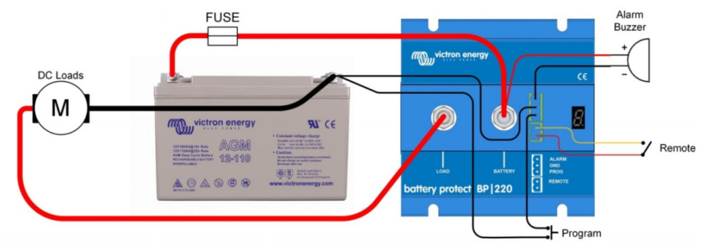 Le BatteryProtect peut être contrôlé par le BMS du VE-Bus pour des batteries au lithium-ion.